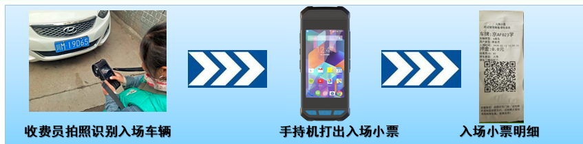 車(chē)輛入場(chǎng)——地磁檢測(cè)啟動(dòng)——提交數(shù)據(jù)至后臺(tái)——手持端車(chē)位報(bào)警——手持機(jī)掃描車(chē)牌(錄入)——打印小票